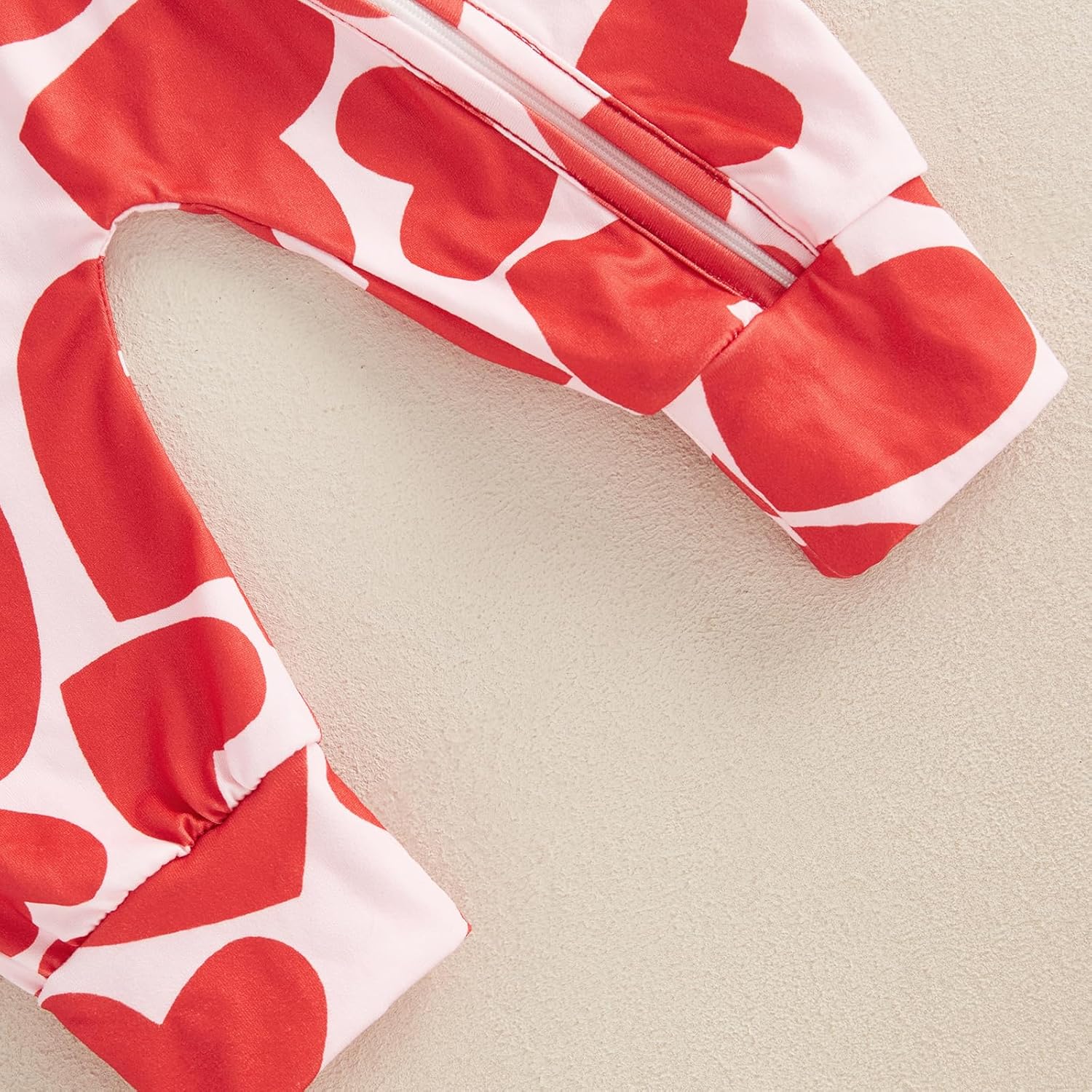 Baby Valentines Day Romper Heart Print Long Sleeve Full Length Zipper Front Jumpsuit for Boys Girls