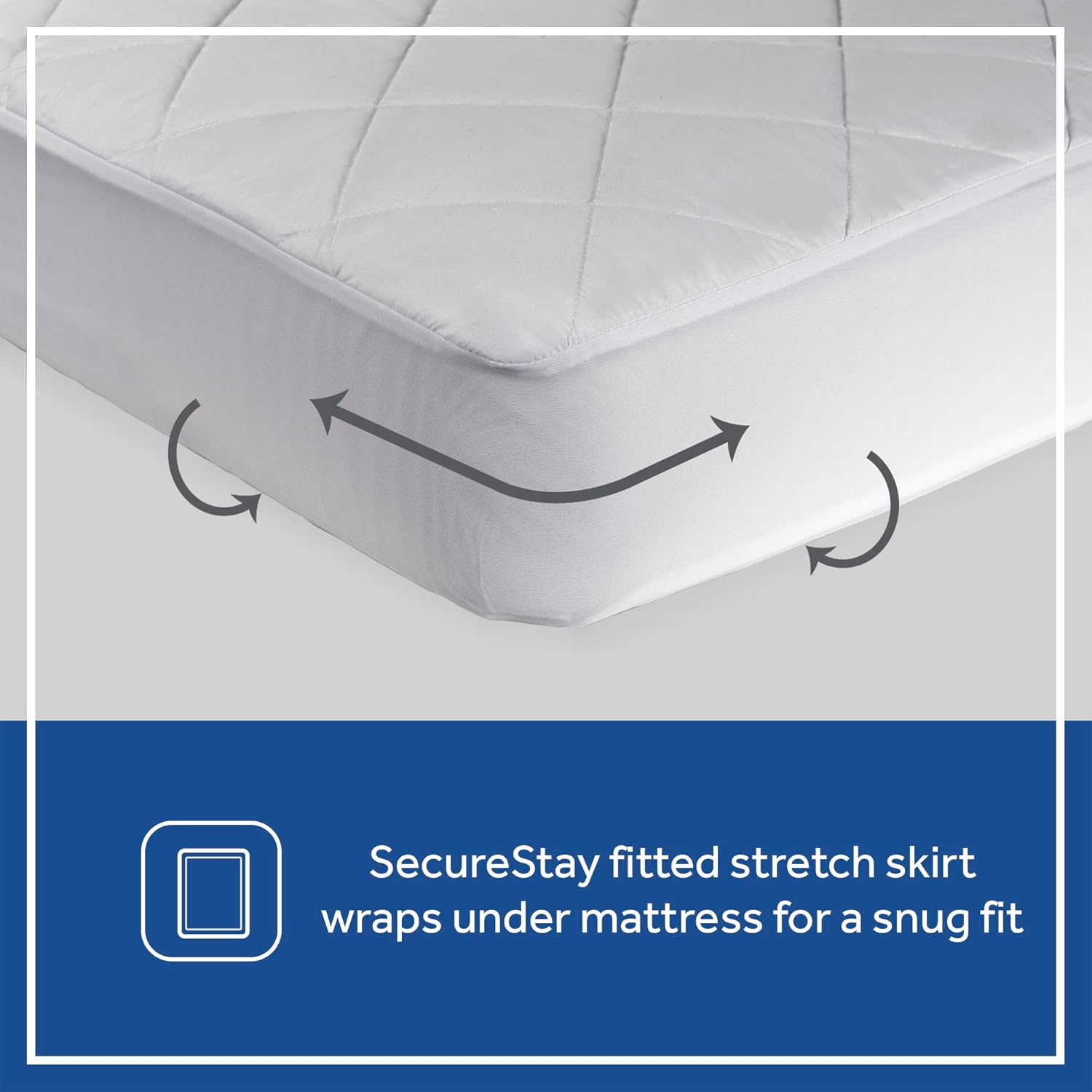 SECURE FITTED DESIGN: SecureStay full fitted stretch skirt helps prevent sliding and shifting for extra security. Snuggly fits USA standard full-size standard baby crib mattresses and toddler bed mattresses