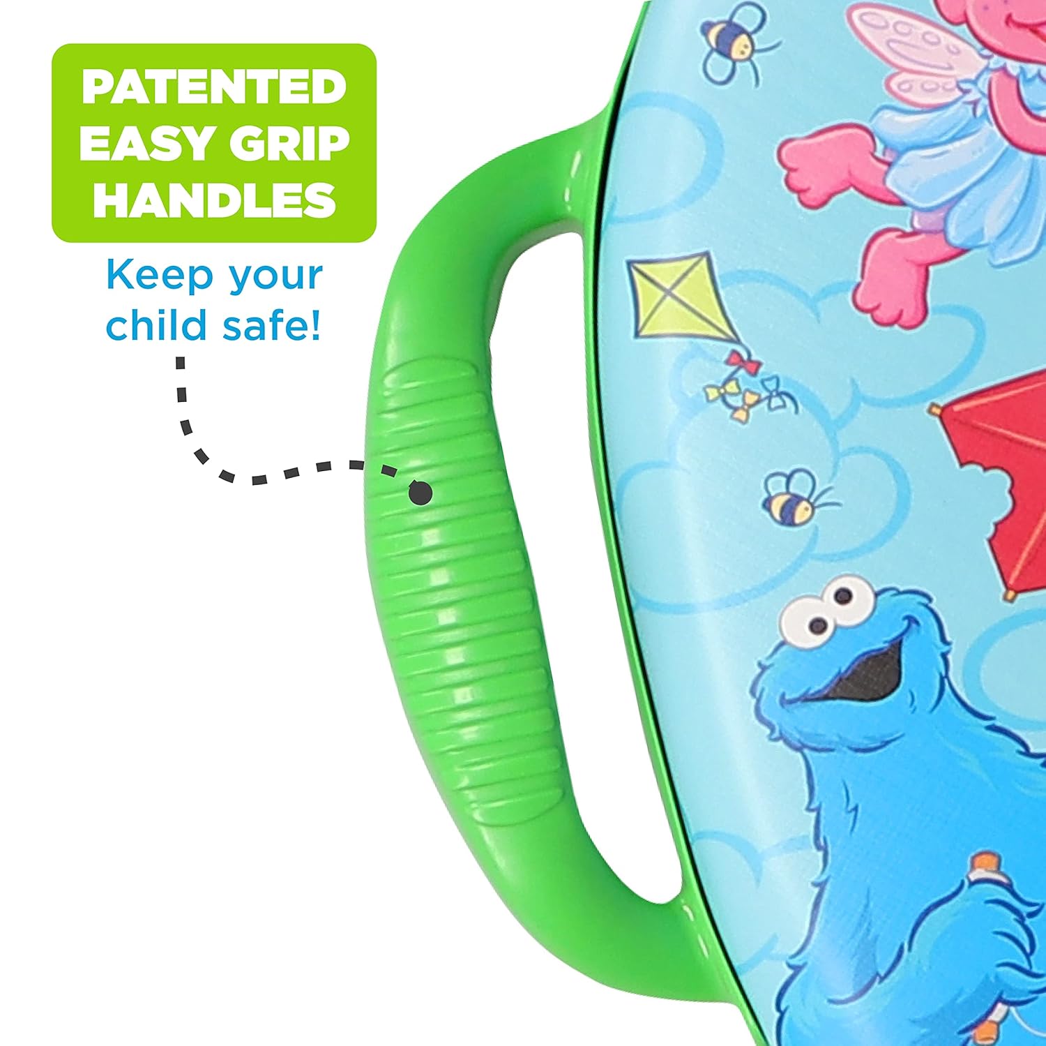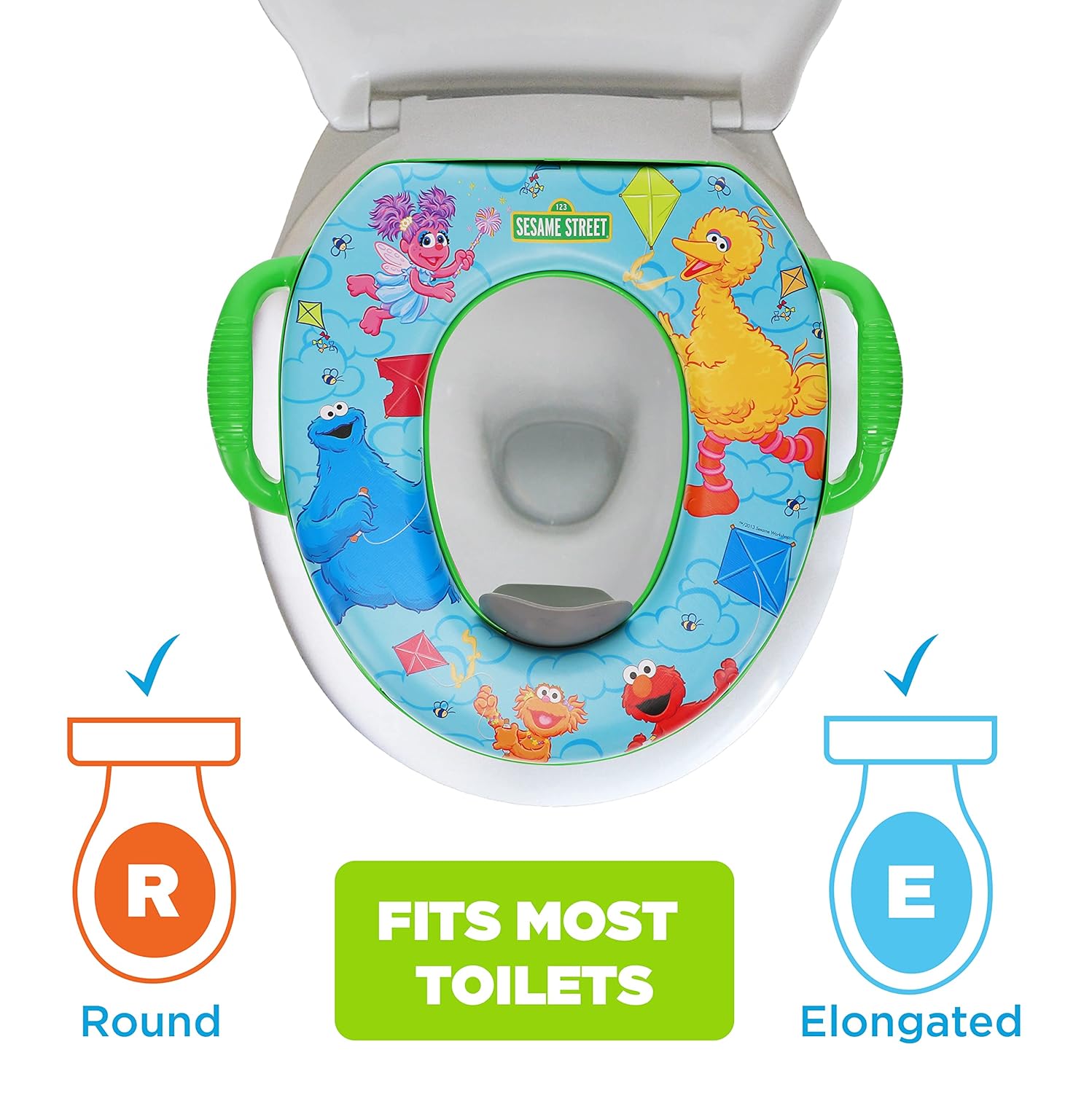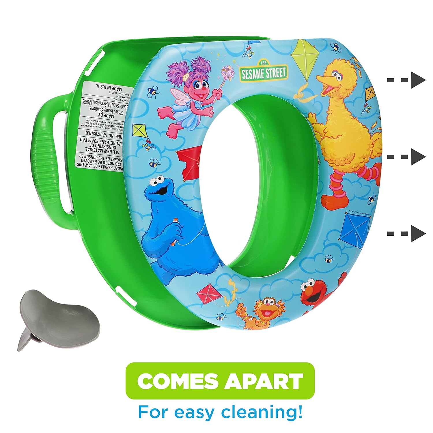 Sesame Street is a special place for little ones to learn, so the residents of Sesame Street are the perfect friends to teach your child how to use the potty with this Sesame Street “Let’s Fly a Kite” Soft Potty Seat! There’s no better way to encourage your child to start using the adult toilet than by bringing in their favorite characters from Sesame Street! This cute and colorful potty seat is constructed with durable plastic and built to last. The Patented, Easy Grip Handle design helps your little one feel safe & secure on the toilet and aids in building independence throughout the potty training process. This soft, cushioned seat is a welcome alternative for children to use versus hard plastic ones. Also included is an easy to install, soft, contoured splash guard that redirects unwanted splashbacks that may occur during potty training. All components come apart for an easy clean that gets every inch. These seats are a safe option all around as they are both BPA & Phthalate-Free! This potty seat fits on most regular & elongated toilet seats so it is ready to use anywhere in the house.