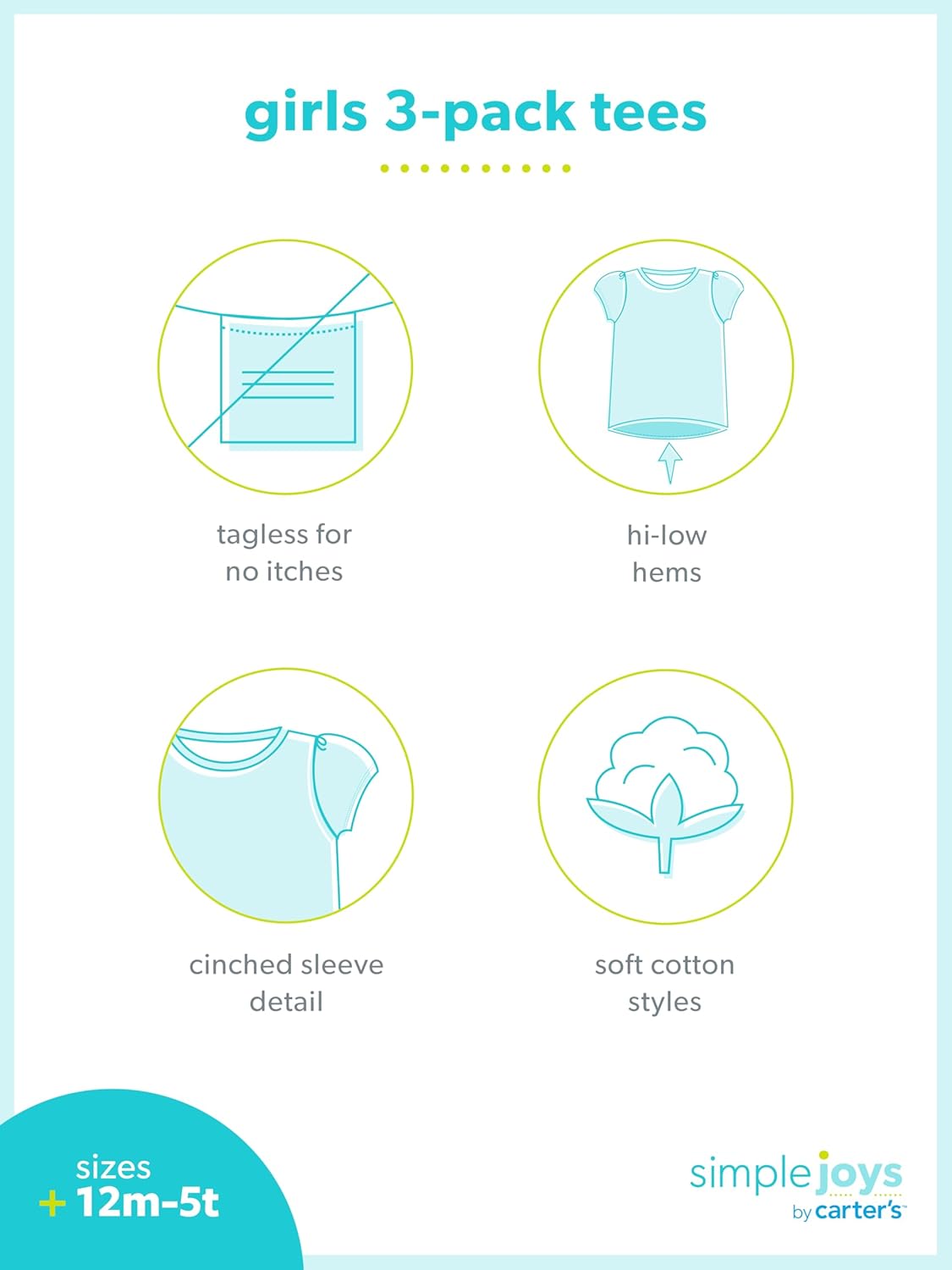 Get your little one set for any adventure with this 3-pack shirt set for girls from Simple Joys by Carter’s! This set offers unbeatable value, providing three high-quality tees in one pack, perfect for rotating through the week. Made by Carter’s trusted brand known for durability and comfort, each top is crafted from soft, comfy fabric that stands up to both playtime and machine washes. The set includes a fun mix of prints and colors, bringing a splash of personality to every outfit—whether she’s off to school or exploring the backyard. Treat her to comfort, quality, and style with this versatile 3-pack!
