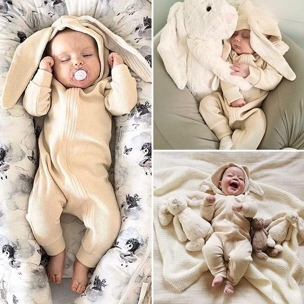 Simplee kids Animal Bunny Baby Easter Romper Long Ear Rabbit Hoodie Romper Jumpsuit with Zipper
