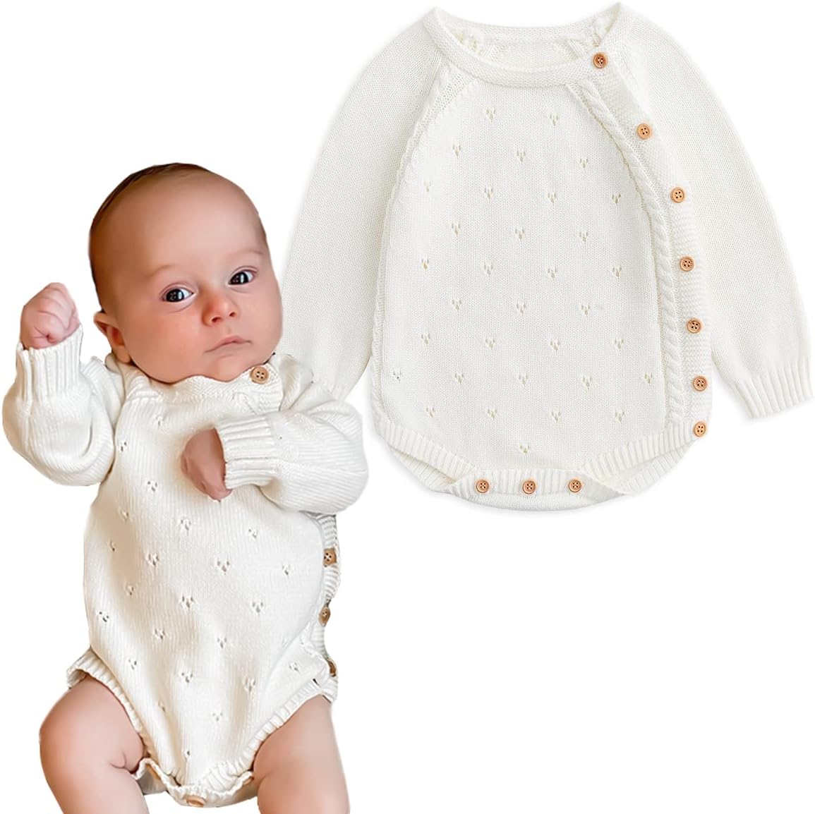 Simplee kids Baby Boys Girls Knitted Romper Jumpsuit Long Sleeve Onesie Bodysuits One Piece Sweater Outfits