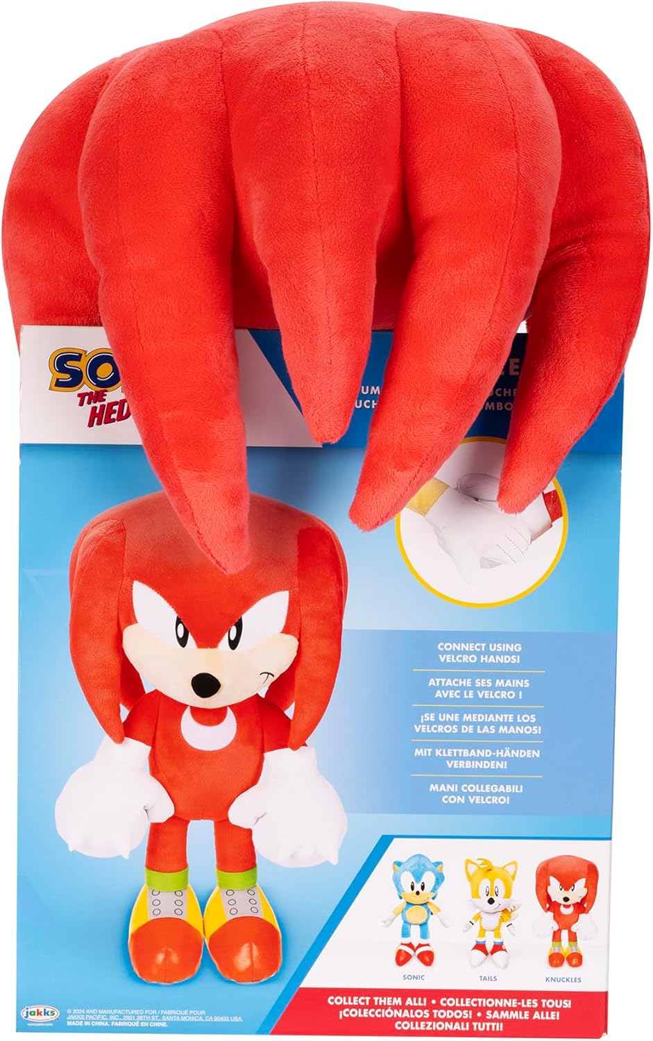 Includes hook in loop fasteners on the hands so Sonic, Tails, or Knuckles can connect together like they do in the game (each sold separately)