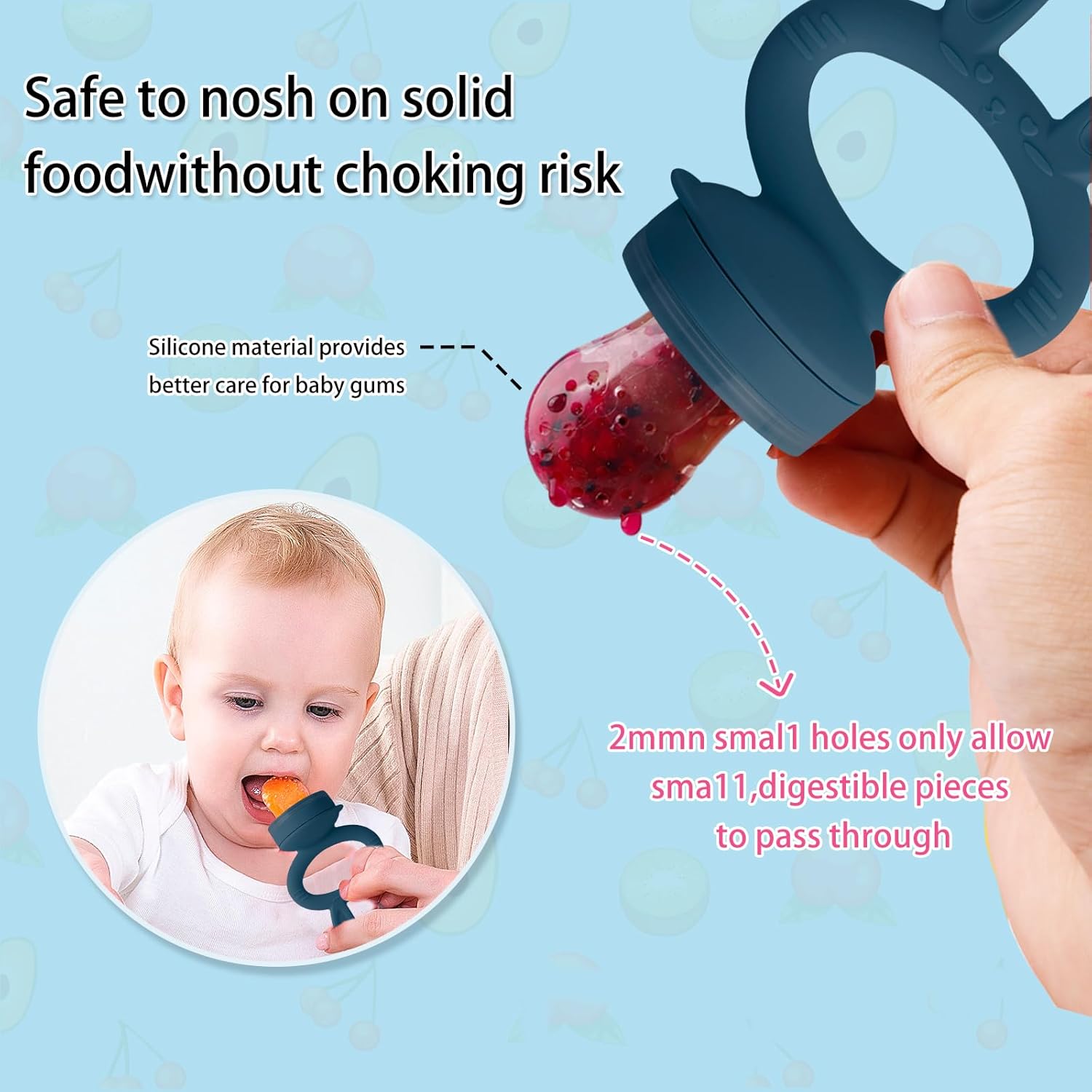 Safe Self-Feeding Journey: Crafted with a soft silicone pouch and tiny, digestible holes, our feeder allows for effortless self-feeding, minimizing choking hazards. It’s the perfect tool for introducing solids and diverse flavors to your little one.