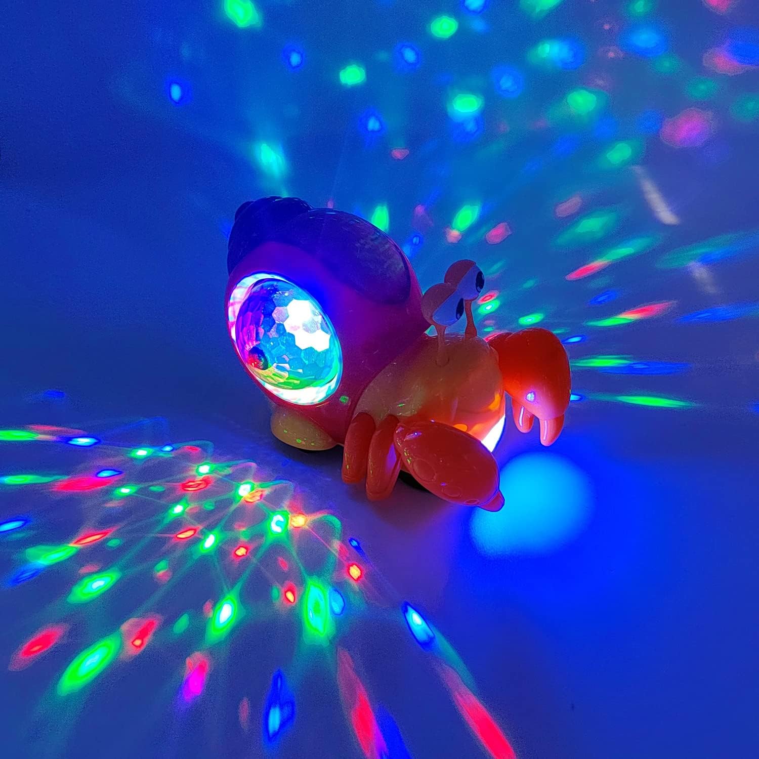 【Dazzling Light & Music】 When crawling, the crab will play music and emit dazzling light. The light is continuously rotating, dazzling, just like stage lighting. Your kids will love it definitely.