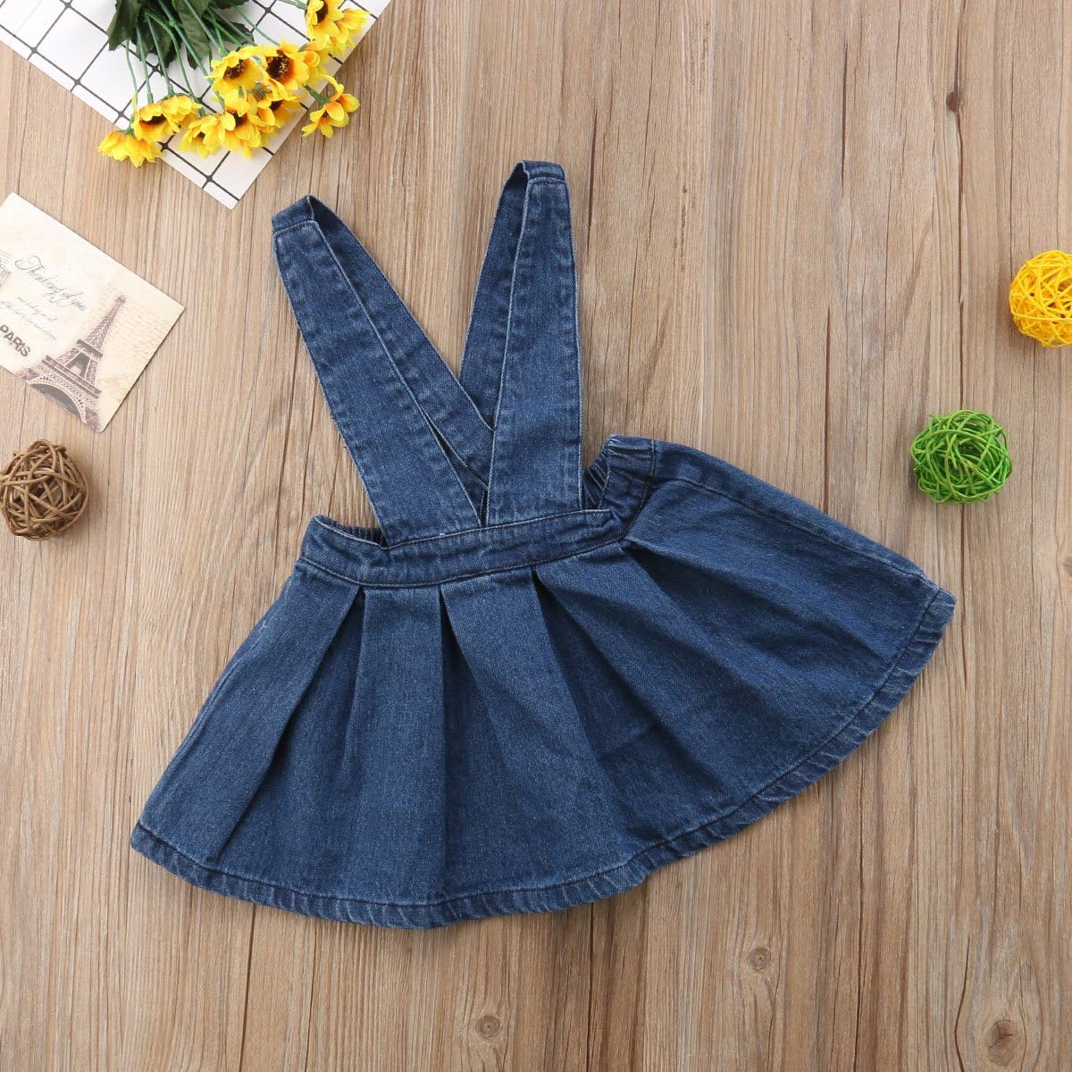 Little Girls Suspender Skirt, Denim Solid Color Waist Elastic Band Wild Fashion Skirt, Baby Girls Overall Skirt