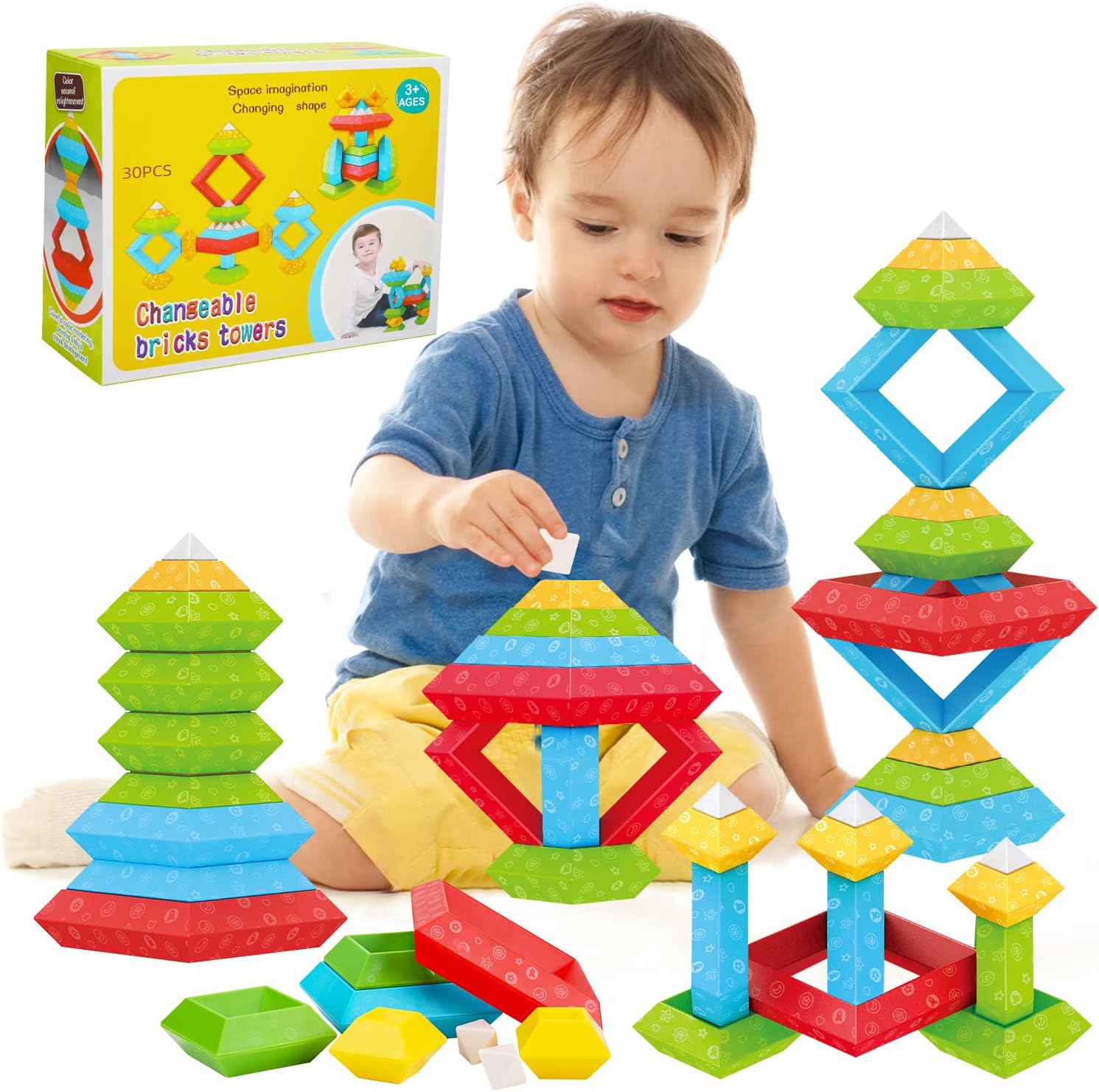 【Fun Educational Stem Toys】The pyramid stacking blocks for toddlers toy 2024 are designed to help your kids’ to develop fine motor skills, inspires your older kids creativity and imagination, and can let them experience fun of the stacking. Great fine motor skill toys for 2 3 4 year old, stem toys for 1 2+ 3 4 5 year old, creative building toys for toddlers 2-4 years.