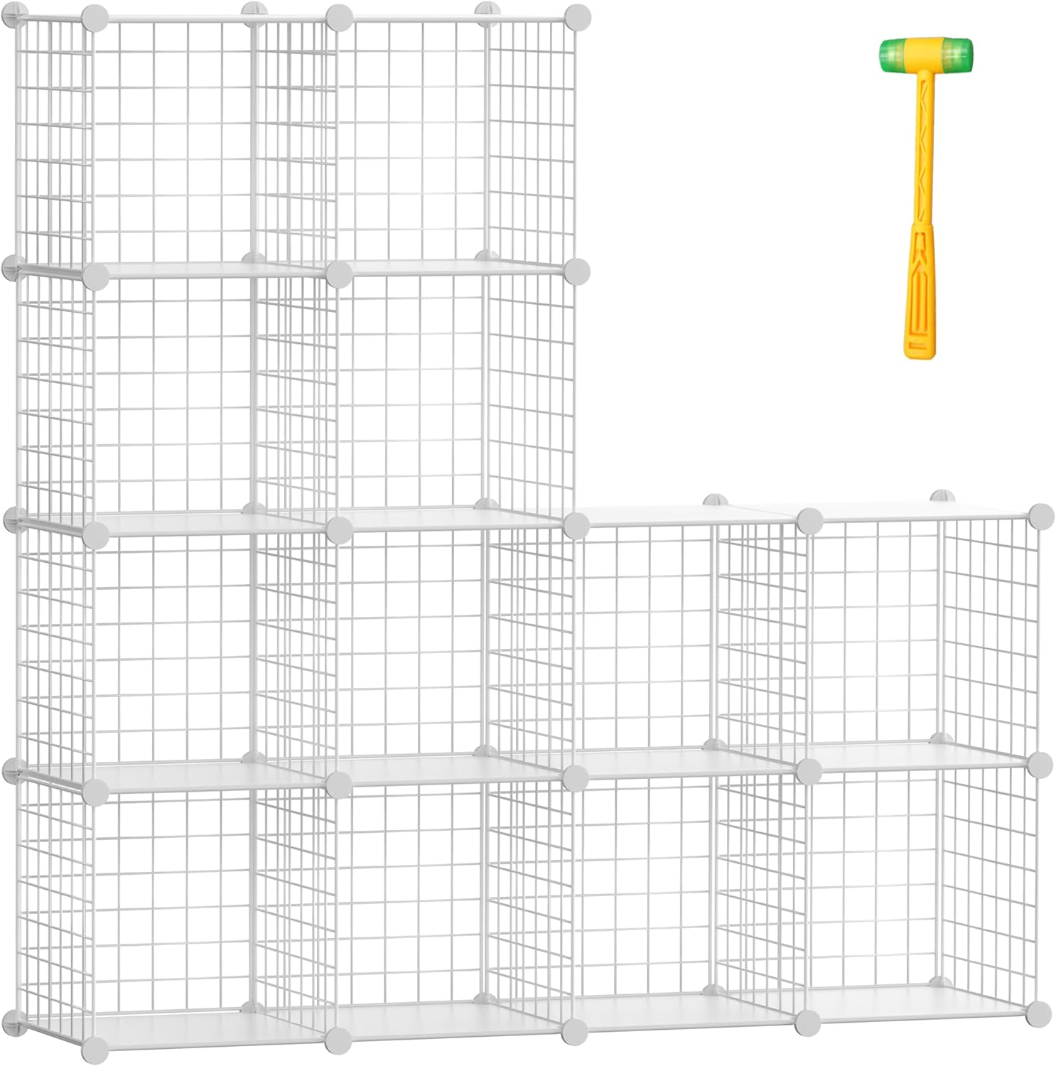 TUMUCUTE Cube Storage Organizer, Metal 12-Cube Shelves Bookshelf, Portable Closet Clothes Organizer for Bedroom, Home, Office, White