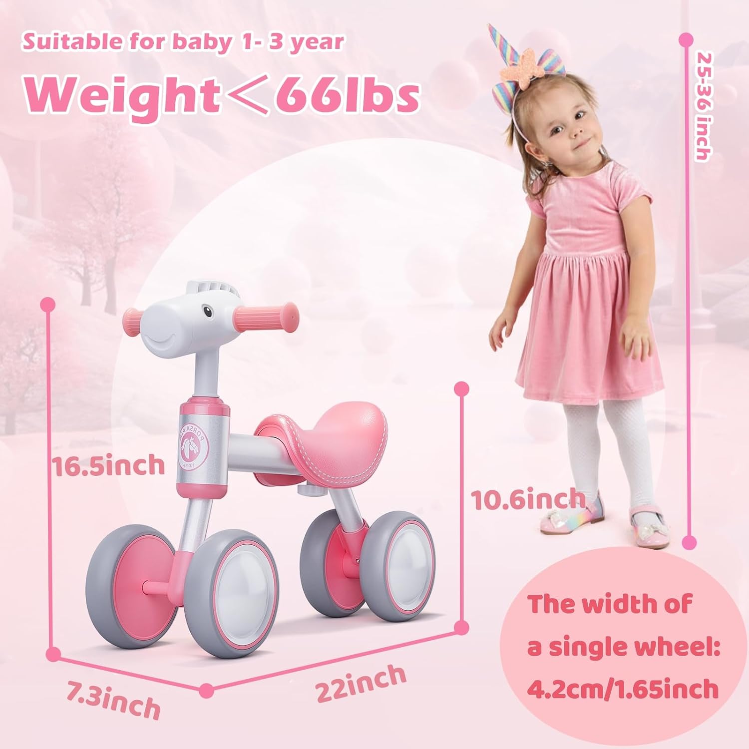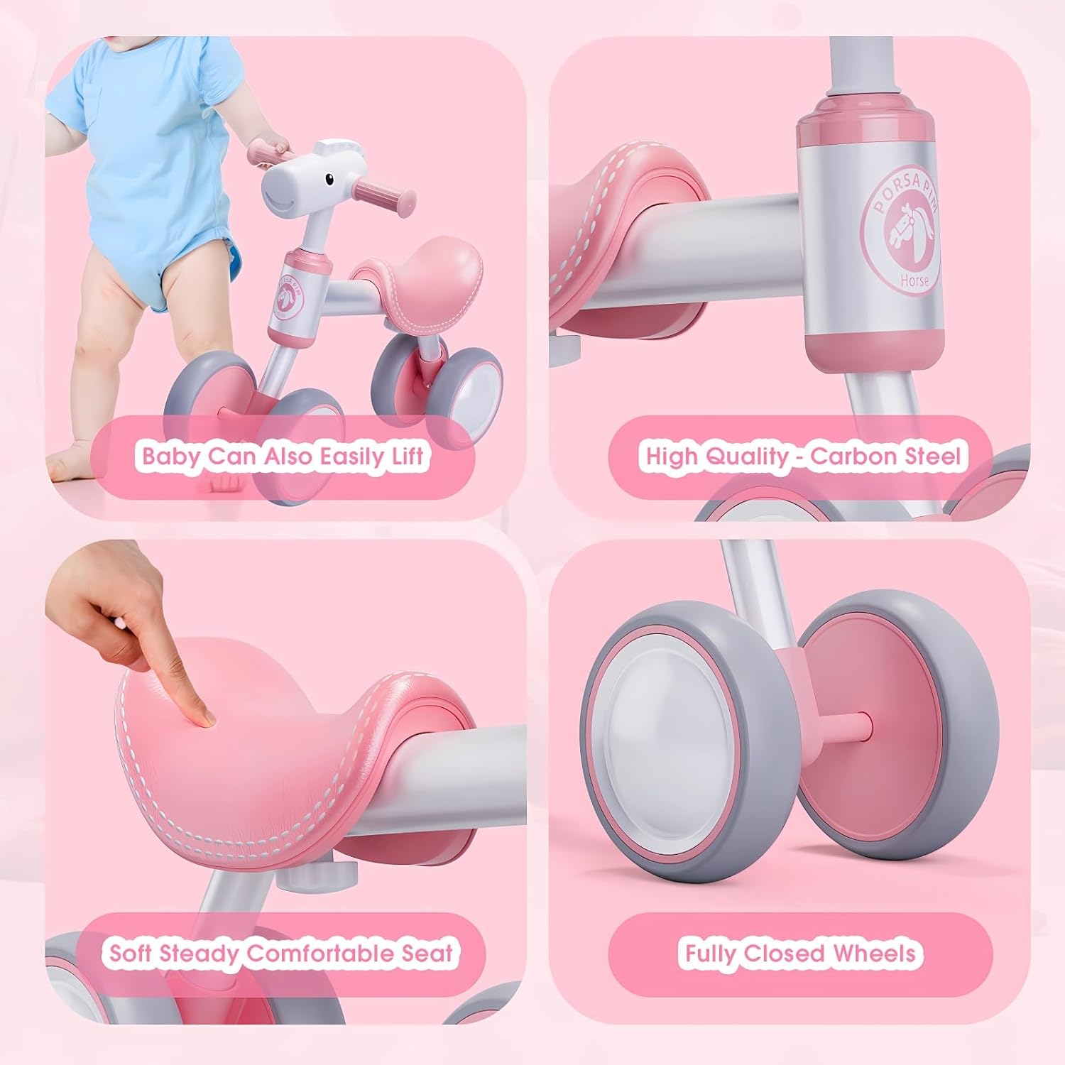 【Cute and Lightweight】The horse baby bike really cute, it is easy to control, lightweight build is easy for toddler to push, 2.1kg (4.6 pounds) of weight, both you and your children can easily carry it around to play. The balance bike great for teaching baby how to walk with his feet to go forward, great for baby learning to peddle.