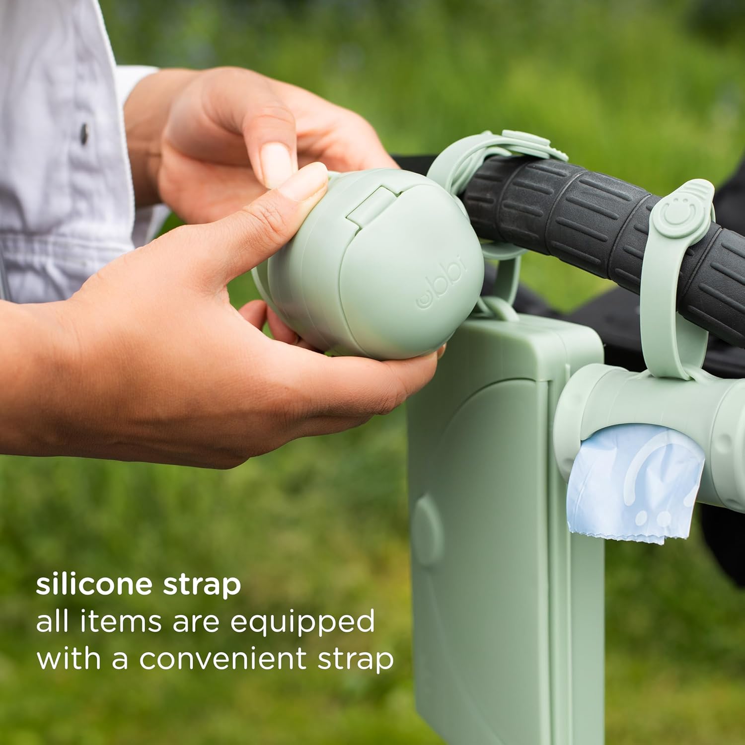 The Ubbi On-the-Go Gift Set contains all the on-the-go necessities needed for a busy parent out and about! It includes a changing mat and bag, wipes dispenser , pacifier holder and bag dispenser. The soft, yoga like mat and bag can hold a few diapers, travel size wipes dispenser as well as your phone, or keys! Also included is a bag dispenser that turns to retract, allowing bags to be quickly reinserted and easily torn for use – and they’re lavender scented to keep stinky diapering odors at bay. The dual pacifier holder is perfect for storing double the pacifiers without cross contaminating them if one is dirty. Last but not least, the wipes dispenser makes for quick and easy on-the-go changes while keeping wipes moist and fresh. Each item in the gift set comes with a bonus silicone strap for easy hanging off of a diaper bag or stroller and the gift set is ready to be gifted, so no wrapping needed! About us: Ubbi is a globally recognized brand, designing innovative and creative products with parents and children in mind. Under the Ubbi name, you will find unique, quality products that are easy to use, and simplify parents’ lives while keeping babies happy and safe as can be. Our steel, odor locking diaper pail was a first on the market in 2011, and has become our flagship item. With the same customer focused philosophy and innovative design capabilities, we have expanded into a variety of product categories: feeding, modern and trendy on-the-go items, bath toys and functional accessories. From concept to final creation, the Ubbi team works together every step of the way to bring the best in design and value.