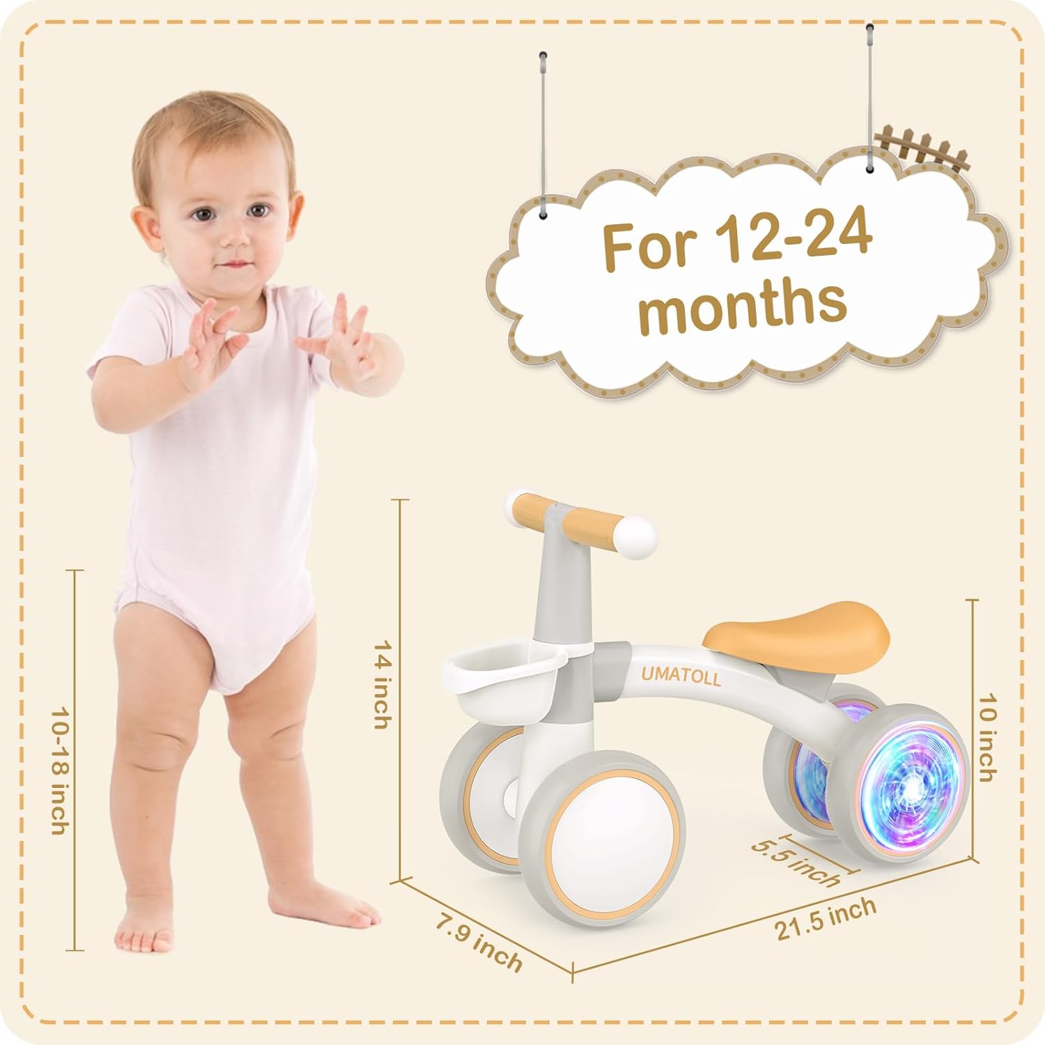 PERFECT GIFT for 1-2 Year Old: The toddler bike brings babies fun and joy, while helps develop their balance, control and leg strength. Removable baskets can hold baby’s beloved small toys. No need tools, it only takes a few minutes to complete the installation. Perfect first birthday gift for boys and girls!