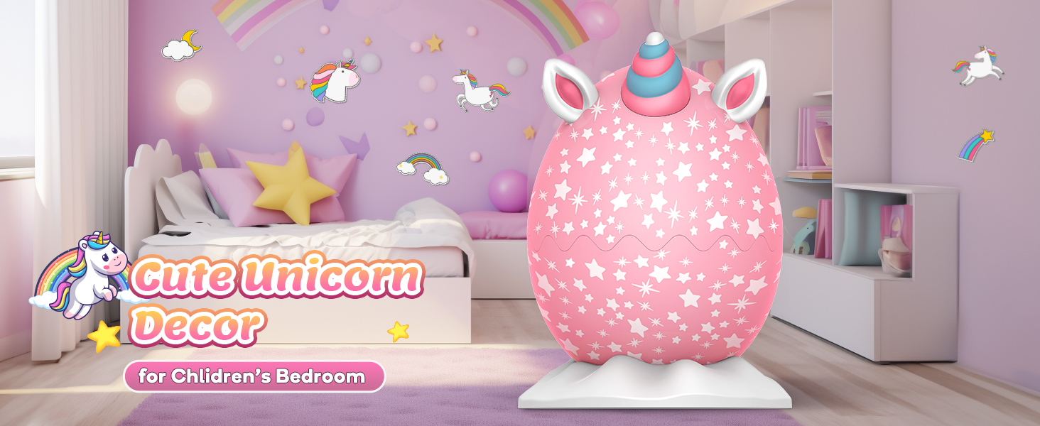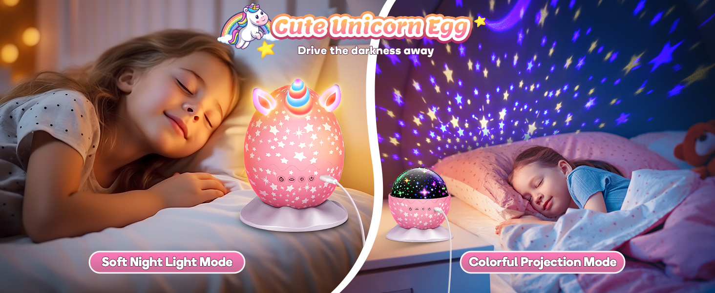 Unicorn Egg Design: Unique design for little girl. Pink unicorn egg appearance with a unicorn projection lamp can be used as a cute unicorn egg decor. Or open the eggshell as a projector, creating a unicorn fairy tale world for our girl