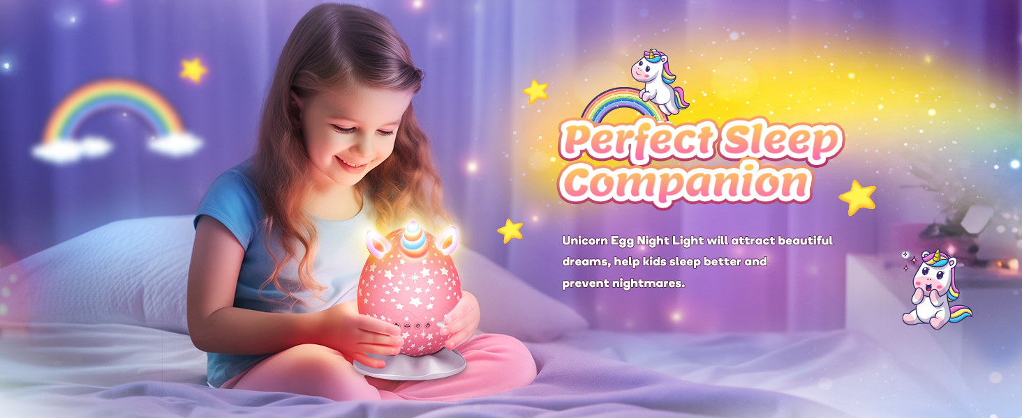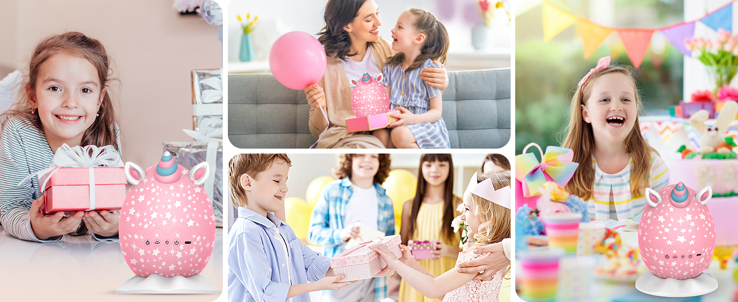 Best Gifts for Girls: Unique pink unicorn egg design, 3 in 1 different choice of light pieces, no matter what kind of theme world our girls prefer, night lights can create wonderful and colorful visual effects, create a dreamlike scene in their room, improve their cognition of the world. This will be the best Birthday gift for kids