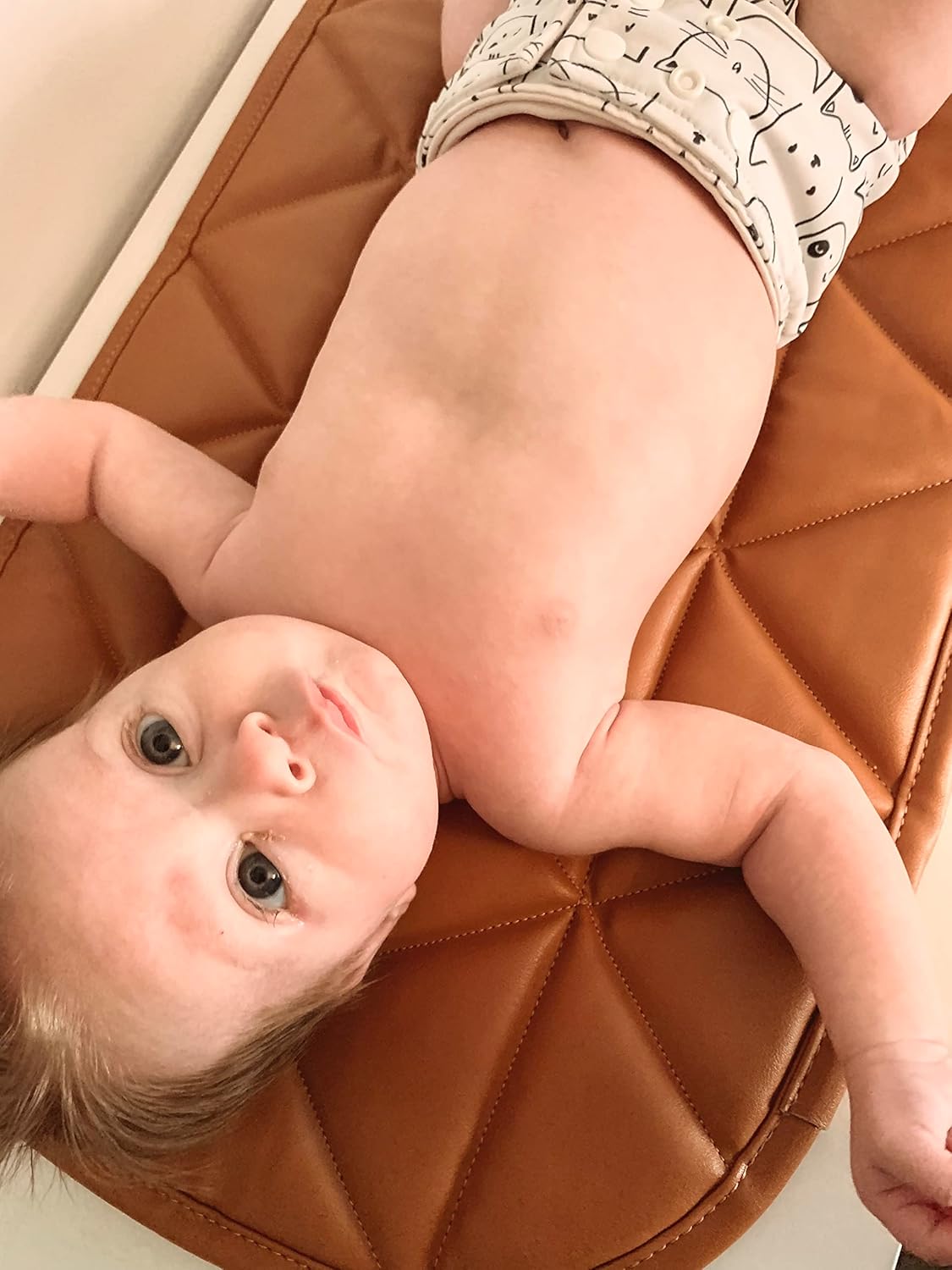 100% waterproof quilted changing pad. Vegan leather on both sides.