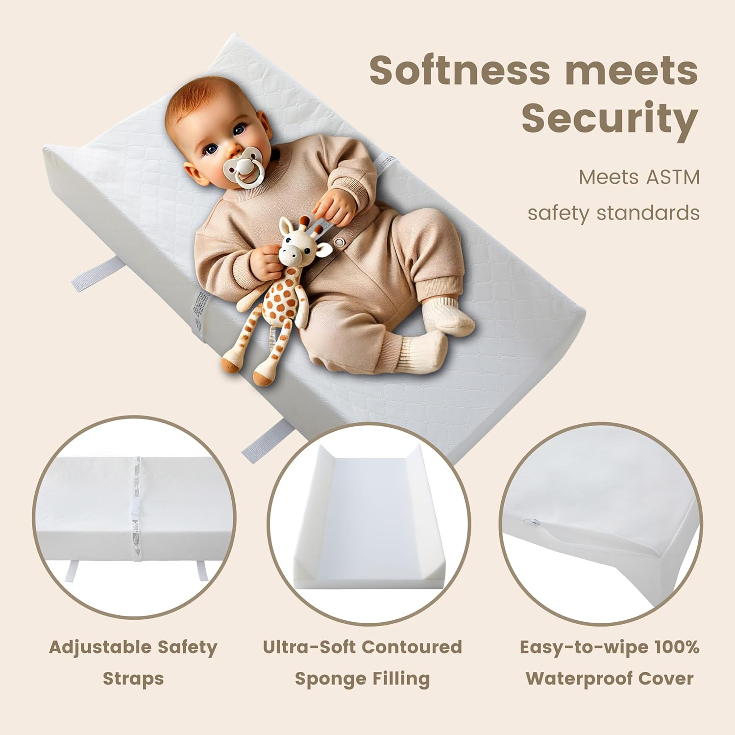 EASY CARE: Our changing covers are not only soft and comfortable, but also easy to care for. The baby changing cover has a zipper that can be easily removed for cleaning. Its washable and durable surface makes cleanup a breeze and ensures long-lasting quality. Do not wash foam.