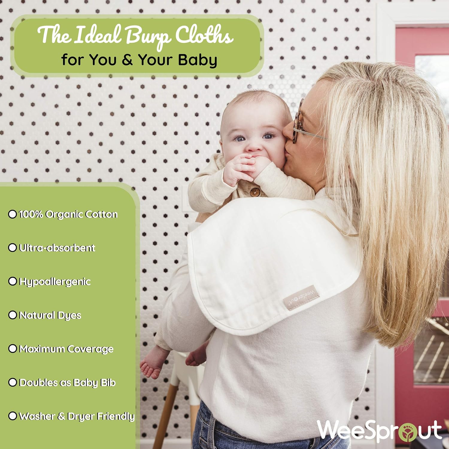 FOUR LAYER DESIGN FOR ULTRA-ABSORBENCY – WeeSprout burp cloths are ultra-absorbent! Four layers of ultra-absorbent material are woven together to ensure that you and your baby stay dry all day. Our burp cloths absorb liquids quickly and prevent them from ever soaking through to you or your baby’s clothing. Say goodbye to ugly stains and changing shirts halfway through the day! They’re perfect for cleaning up messy spills! Plus, they’re machine washable and dryer friendly, so cleanup is a breeze!