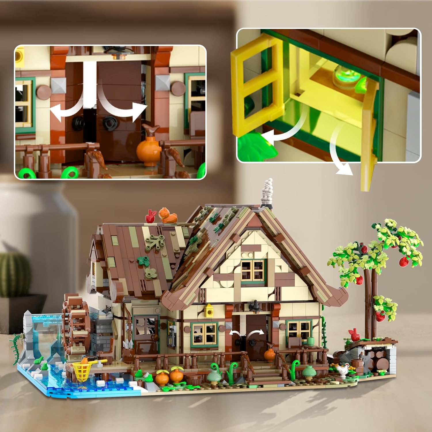 INNOVATIVE LED LIGHTING – This wooden house building set stands out with its authentic design elements, including a functioning waterwheel and a serene pond area. The innovative LED lighting enhances the overall aesthetic, creating a warm and inviting atmosphere, especially during evening play. It breathes life into the wood cabin, making your forest house adventure even more enchanting
