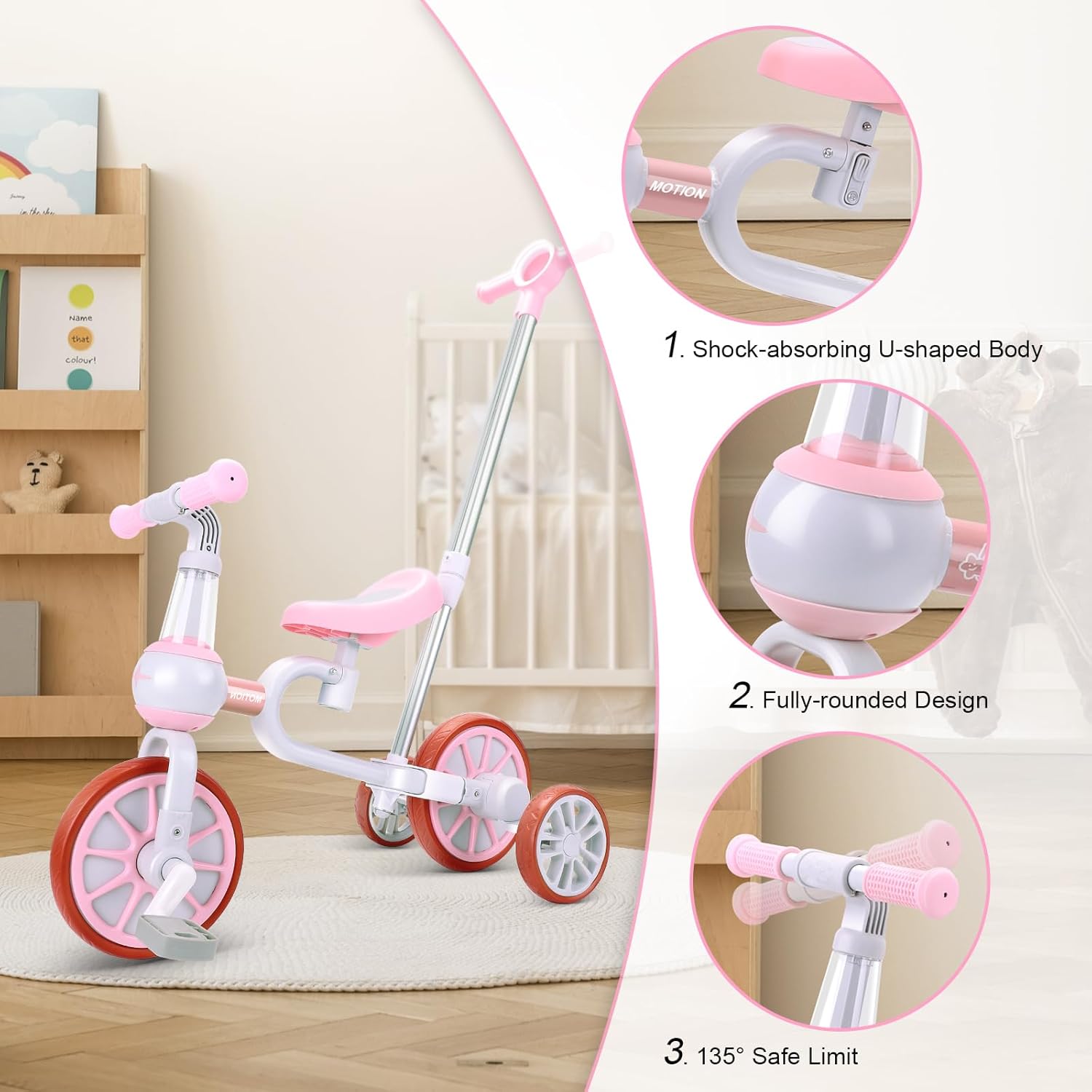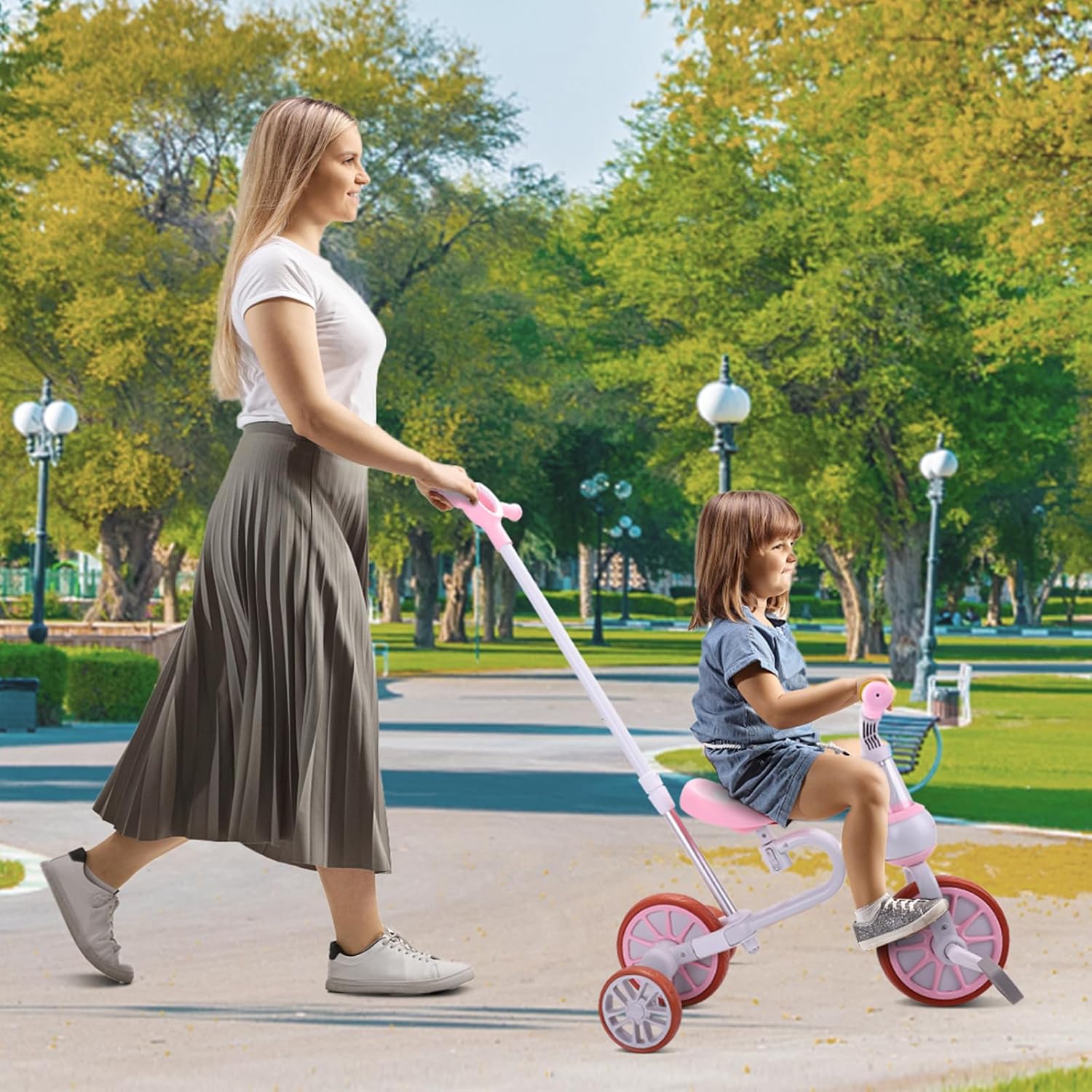 XIAPIA Kids Tricycles for 2-4 Years Old Girls with Detachable Pedal and Training Wheels, Push Bike for Toddlers 1-3, Riding Trikes Toys with Adjustable Push Handle, Birthday Gifts for Kids