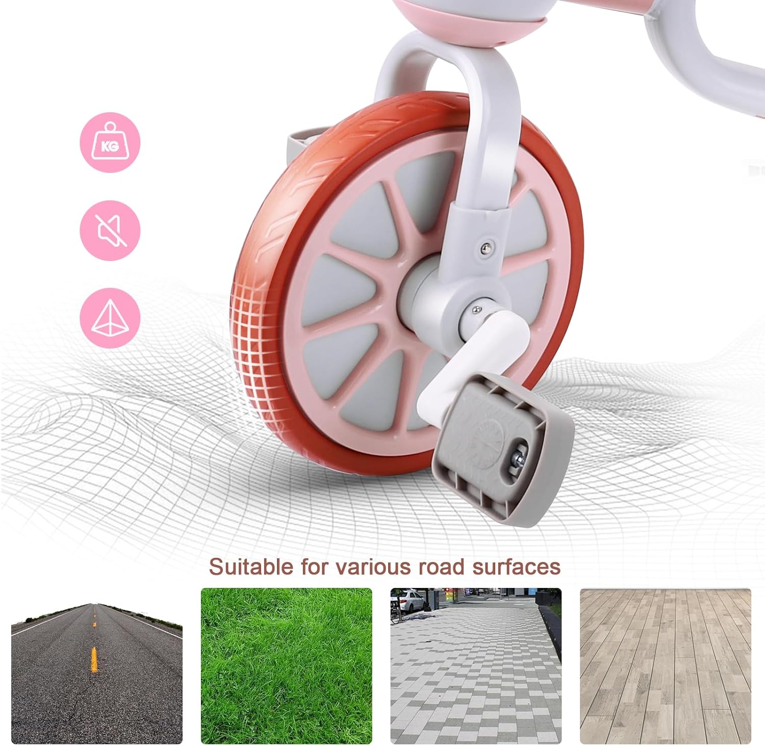 💯【SAFE DESIGN】: This Kids Tricycles is fresh newly designed with Unique U-Shape carbon steel body has damping function, and it works with the EVA widen silent wheels to absorb shock while riding on uneven surface. it’s a kind of good bike gift. Perfect kids’ tricycles for your children.