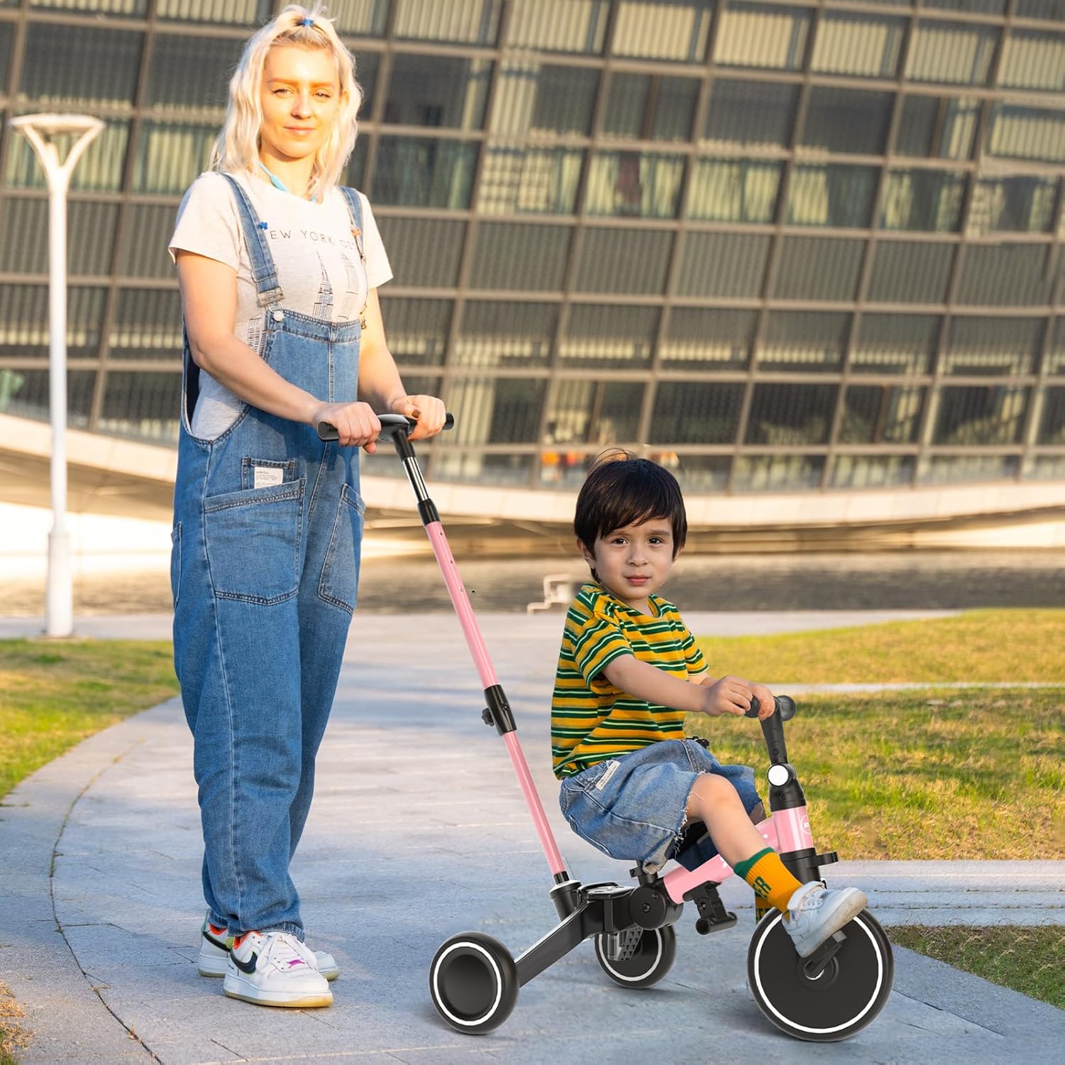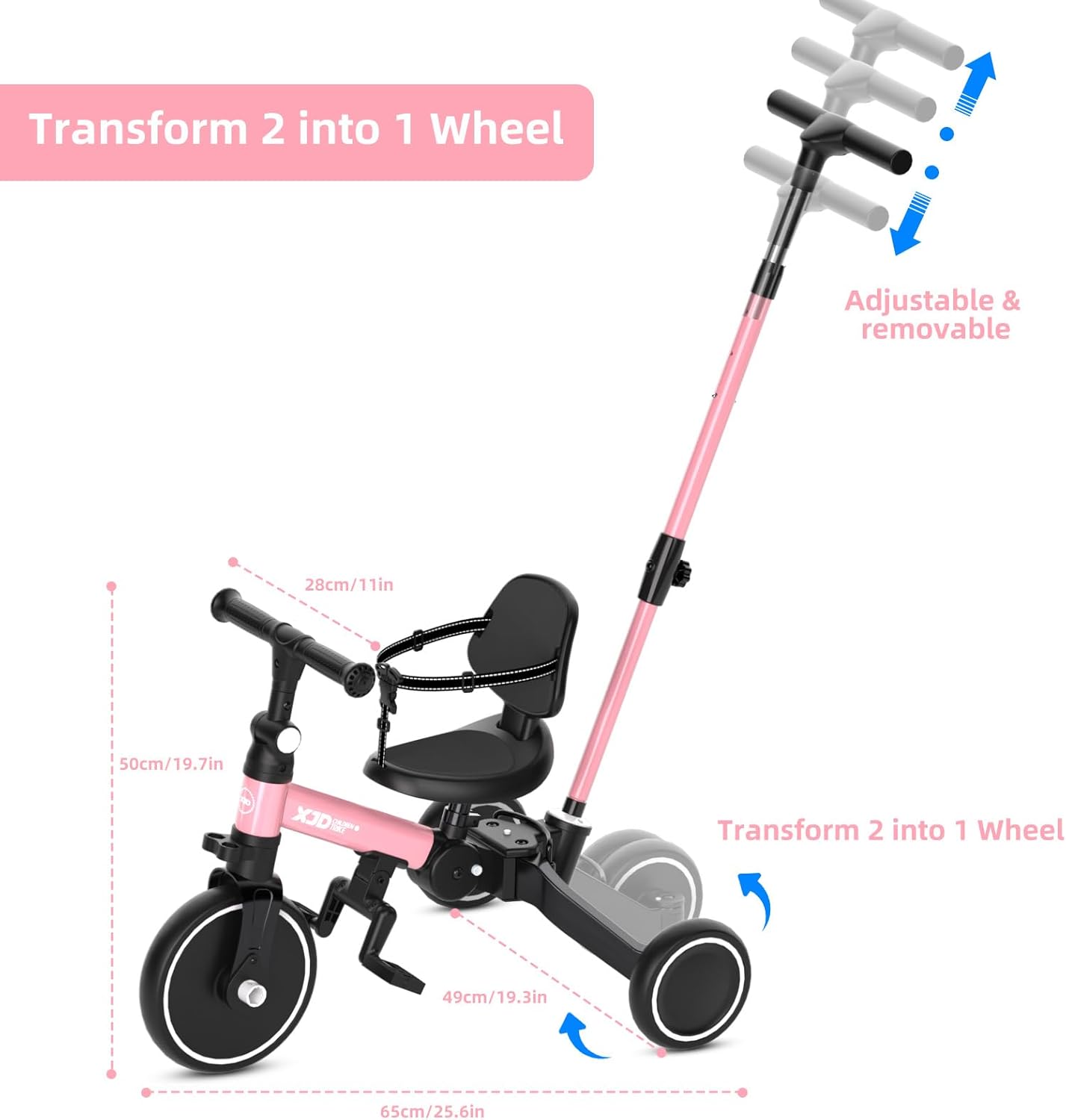 MULTIFUNCTIONAL TRICYCLE: This newly upgraded toddler tricycle has five modes to switch between at will, push balance bike mode, tricycle mode, balance bike mode, and slide mode