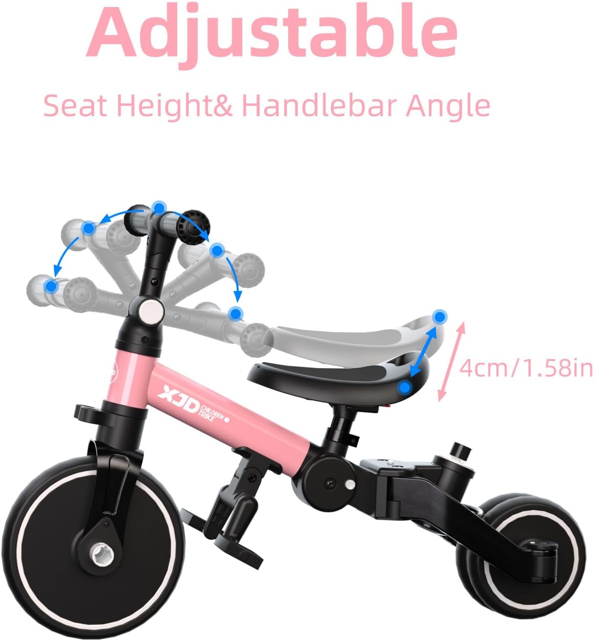 ONE-TOUCH FOLDING FUNCTION: One button folding opens the tricycle body and folds it into a compact size for easy transportation and storage with the push of a button. Compared with other tricycles, XJD tricycle has extra handlebar seat lift function, one button folding function