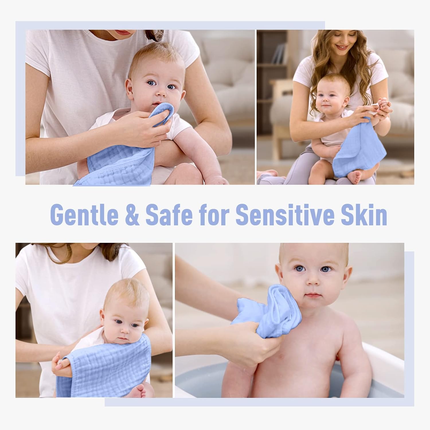 WIDE APPLICATIONS: The baby muslin cloths can be applied as burp rags, baby bibs, baby washcloths and towels, baby wipes or cloth diapers, a must-have for burping, teething or spitting up!