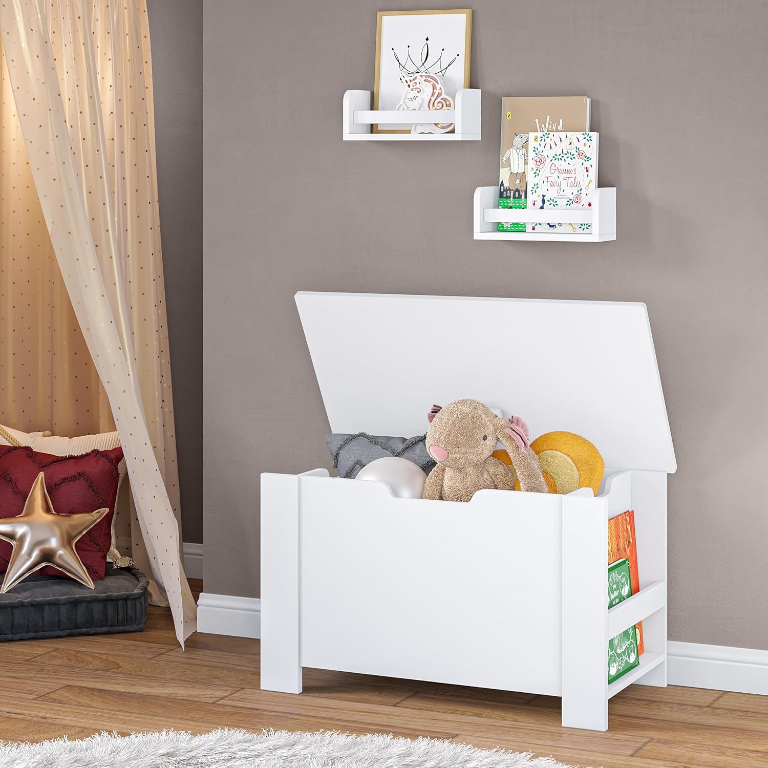 CHILD-FRIENDLY DETAILS: Designed with little ones in mind, our kids’ storage solution features a slow-closing lid to protect small fingers. Create a cozy reading nook where your child can safely enjoy their favorite books in their kids’ reading nook.