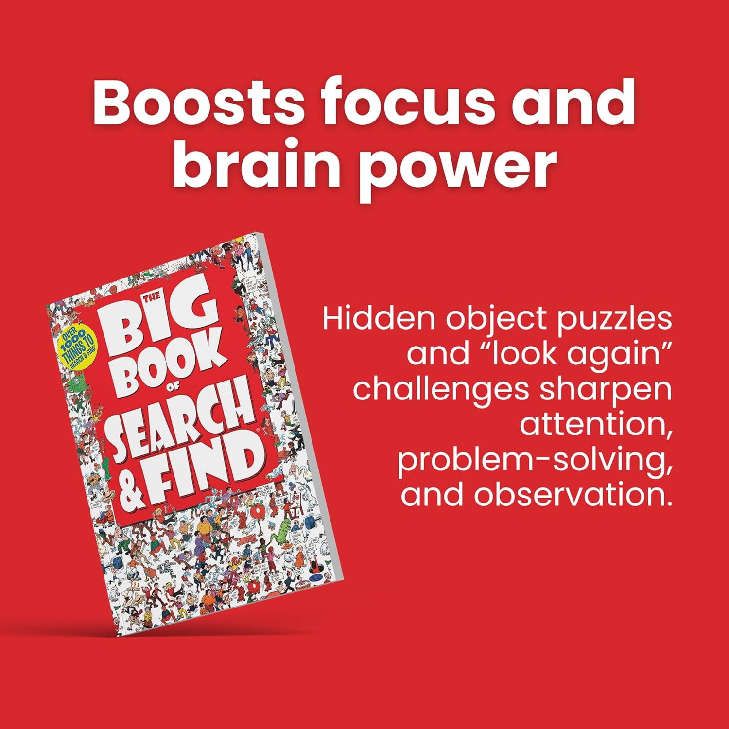 A Classic Hidden Picture Puzzle Book That Everyone Can Enjoy: The Big Book of Search & Find is packed with over 1000 objects to discover in hilarious, action-packed scenes. Join Freddie and his quirky crew as they pop up in colorful adventures across time and space! From flying saucers in the Old West to rabbits at school and peanuts in the museum, every page is a fun-filled seek and find challenge.