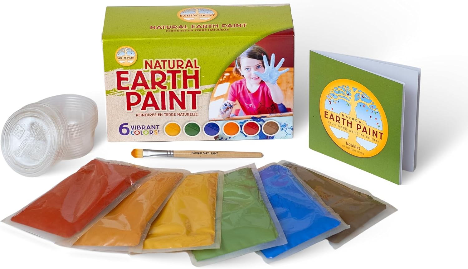 Our best-selling, 100% non-toxic Natural Earth Paint kit creates a creamy, water-based paint when mixed with water. Add more water to create watercolors.