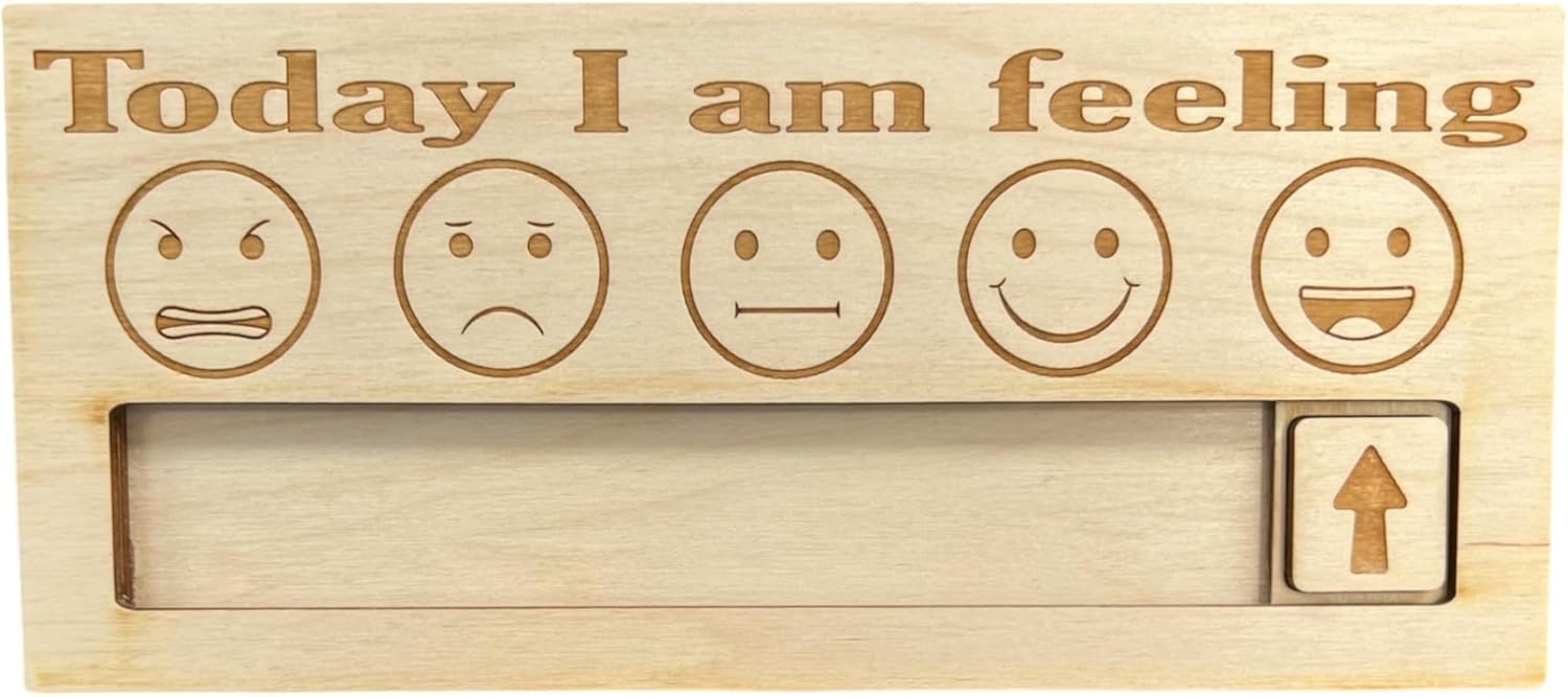 This wooden emoji feeling chart will give kids an easy tool to make their feelings heard, as well as create a calm safe space to discuss emotions – they can identify and communicate their emotions effectively.