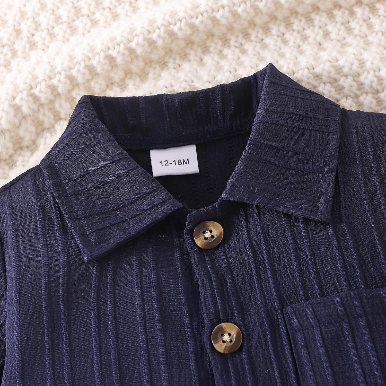 Toddler Baby Boys Clothes Ribbed Button-Down Shirt Tops +Shorts Pocket Outfit 2 PCS set 12 Months-5T Without Tee