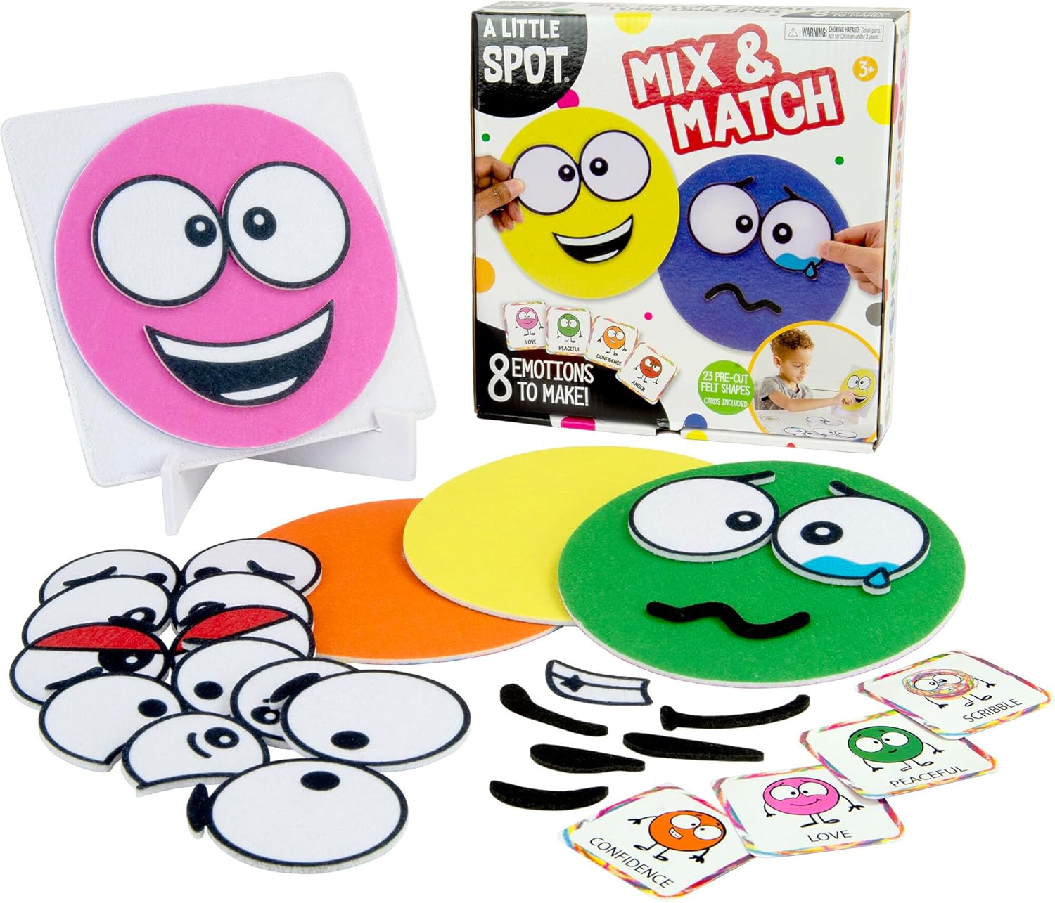 Create a Spot: As they learn about emotions, your child can create their own unique Spots by mixing and matching the 21 pre-cut felt shapes to help express how they feel