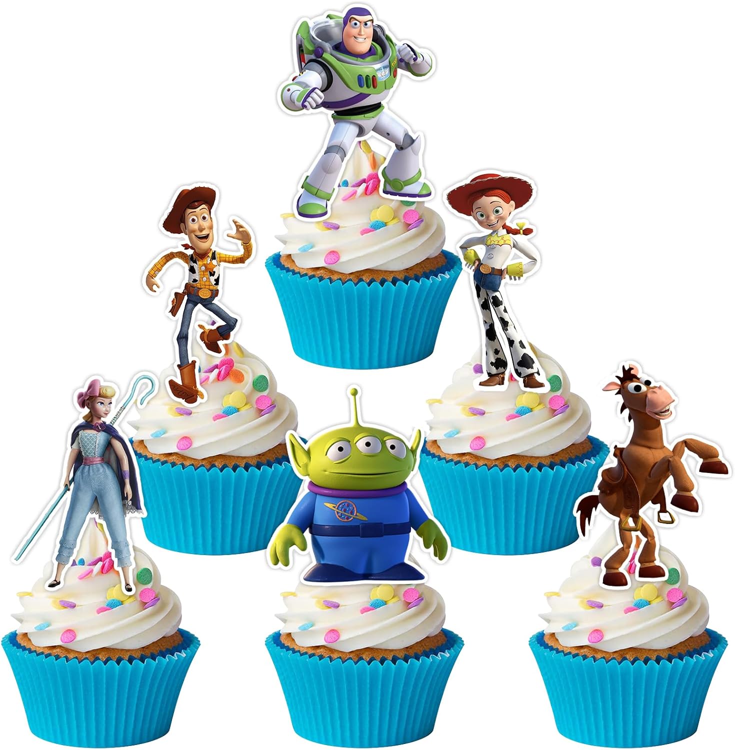 【Toy Inspired Story Birthday Decorations】 Toy Inspired Story cupcake topper are very popular for kids, if you are planning to hold a Toy Inspired Story theme birthday party for your kids, They are the perfect choice to decorate the cupcake table and impressive enough to be noticed.