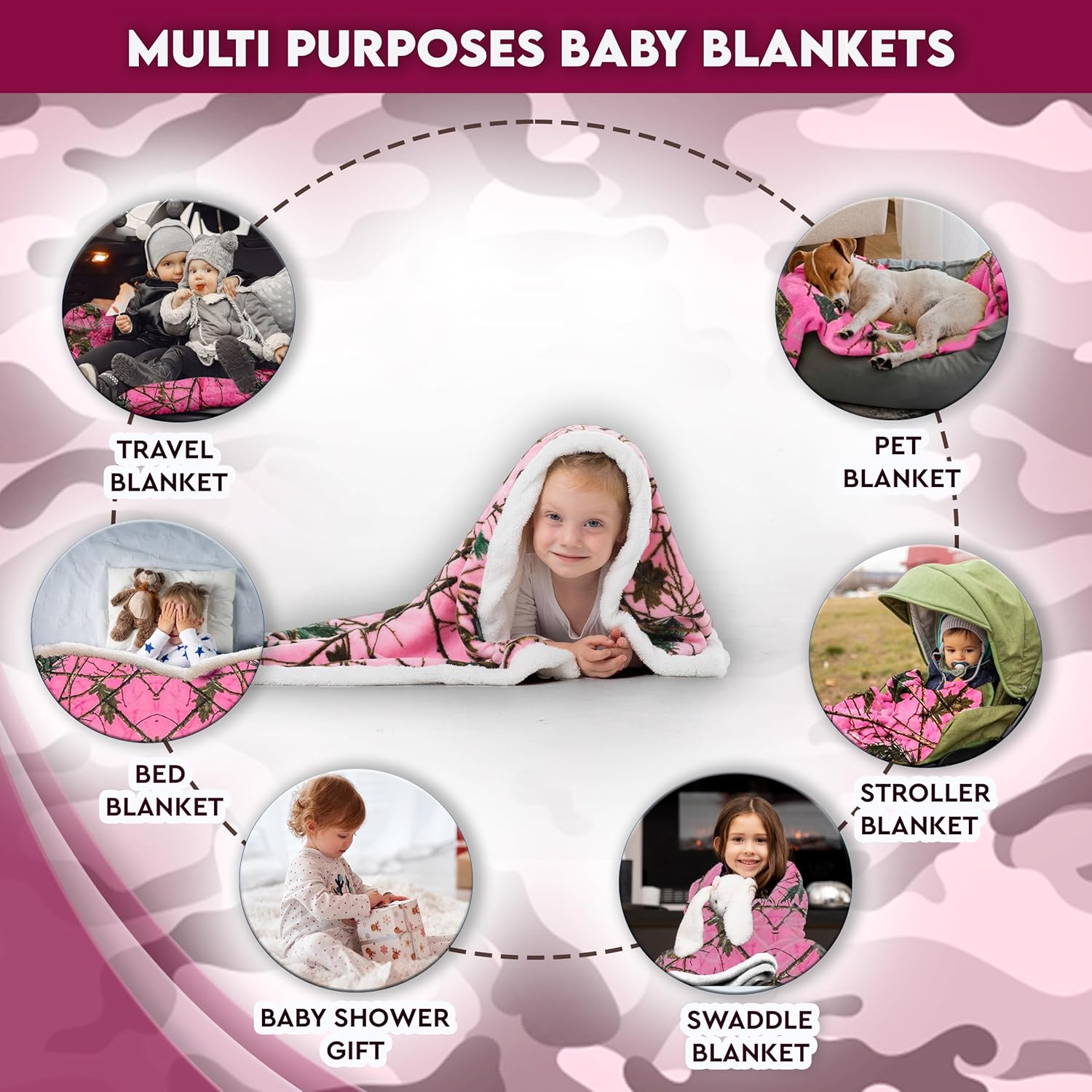 Ultra Soft Sherpa Fleece Cozy Plush Baby Blanket for Kids, Camo Prints, Blazing Pink Forest Camo