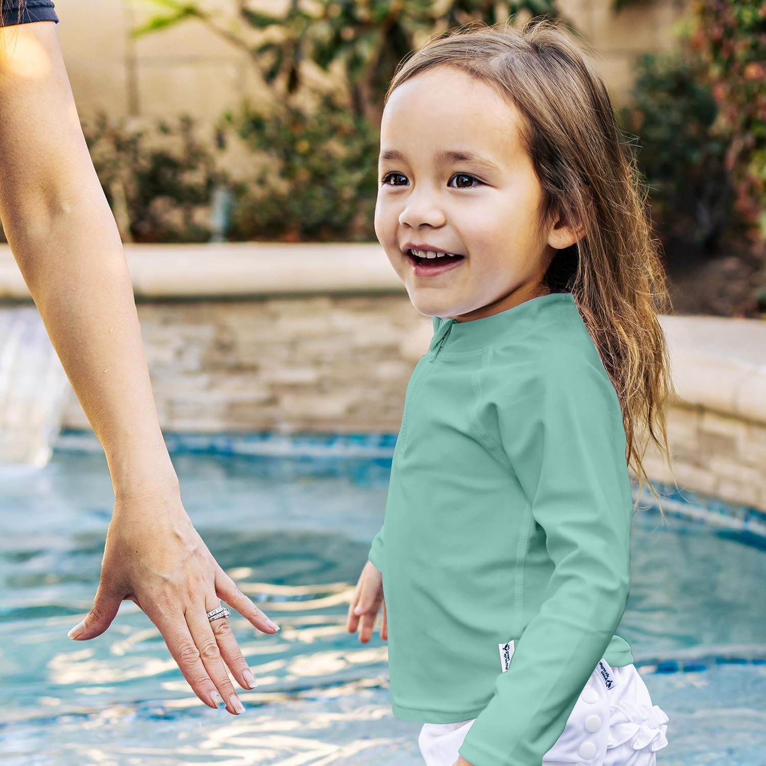 The Long Sleeve Rashguard Shirt provides all-day, UPF 50+ sun protection without having to apply sunscreen to baby’s delicate skin. The stretchy, quick-dry material, and flatlock seams are comfortable and allow baby to move freely and play actively in and out of the water. The Rashguard Shirt also helps keep baby warm during first swim lessons in the pool. Parents love the variety of bright, fun colors that coordinate with all i play. Swim Wear & Sun Wear!